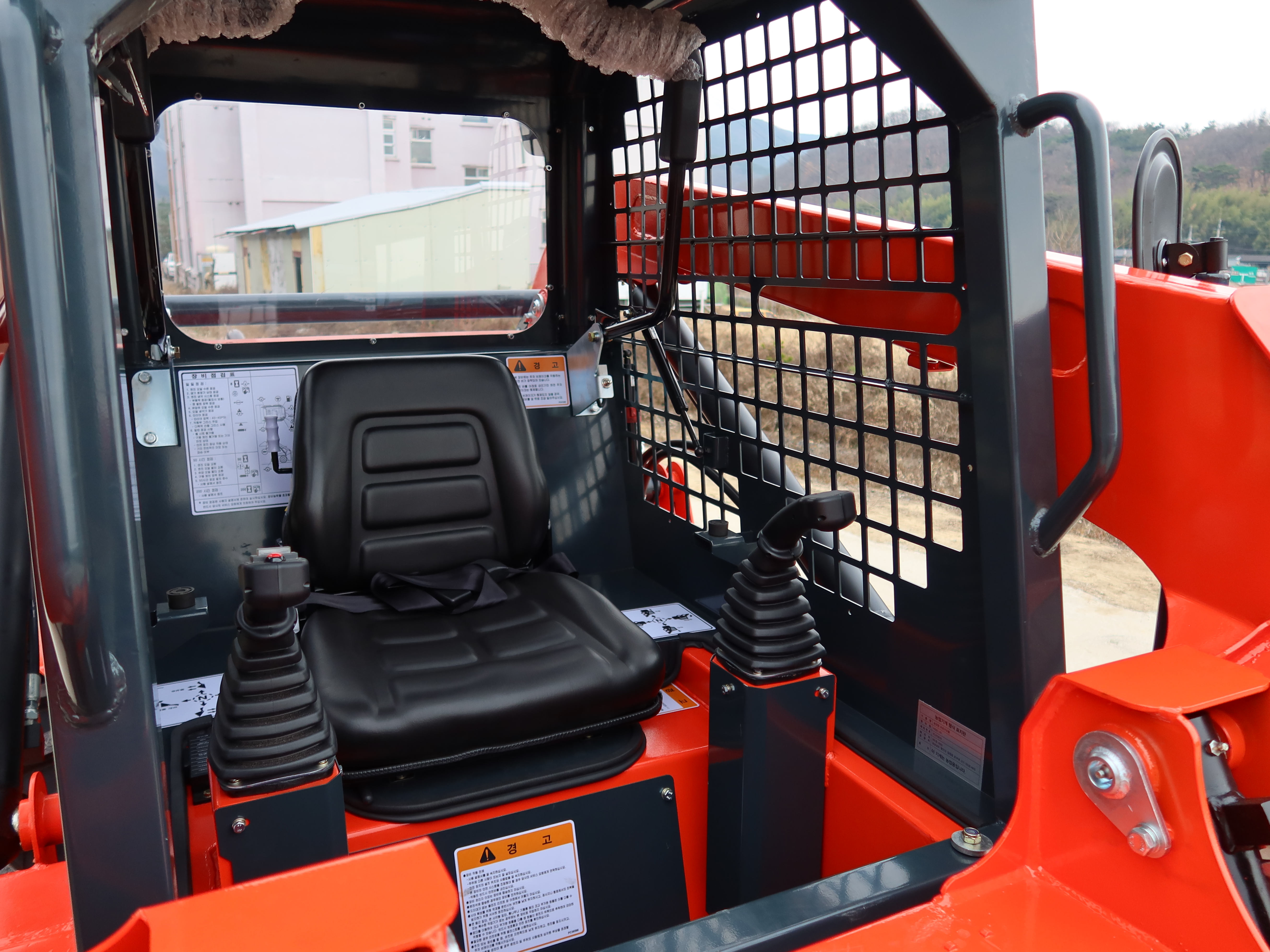 스키드로더 주행과 버켓 운전은 편리하게 유압 조이스틱으로 사용할 수 있으며 한 번도 운전을 해본 적이 없는 분들이라도 몇 번 연습만 하면 쉽게 스키드로더를 운전할 수 있도록 만들었습니다.