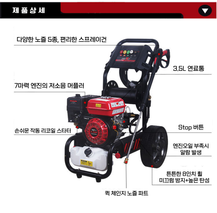 엔진 고압세척기 고압살수기 동력고압분무기 7마력 초고압 세척기