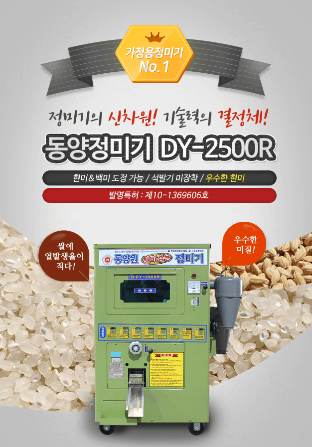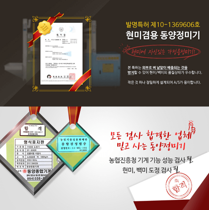 현미 겸용 동양정미기는 국내 발명특허를 통해 기술력을 입증받은 고품질 제품입니다.