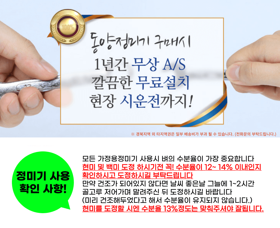 신뢰와 품질을 기반으로 한 동양정미기를 통해 가정에서도 최상의 도정 품질을 경험해 보시길 바랍니다.