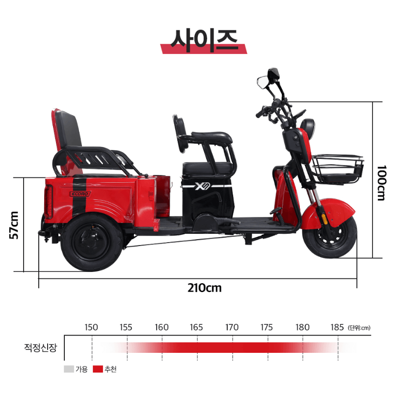 초보자나 고령자도 쉽게 운전할 수 있도록 삼륜차는 운전자에게 안정감을 제공합니다.